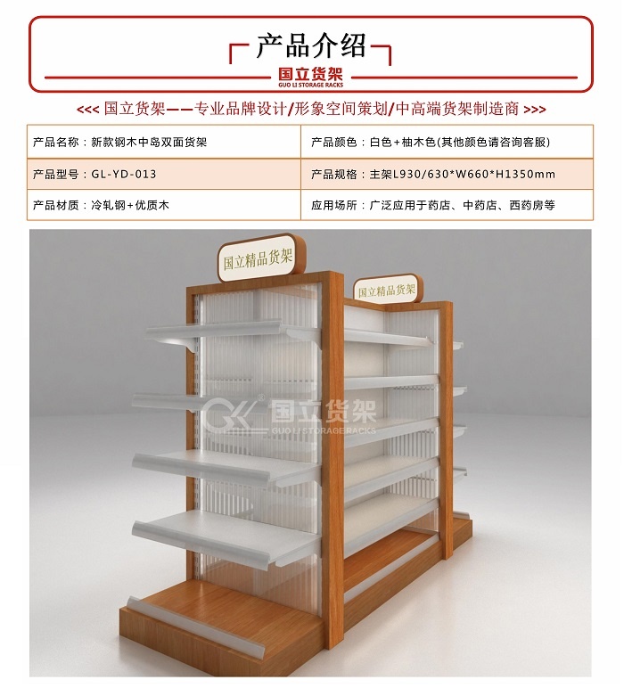 國立貨架專業生產藥店、便利店、母嬰店、超市、化妝品、文具店精品貨架,中藥柜,廠家直供。國立貨架擁有專業的設計團隊,為用戶免費提供上門現場測量,專業圖紙設計和形象指導,全國送貨安裝,提供店鋪一站式解決方案。