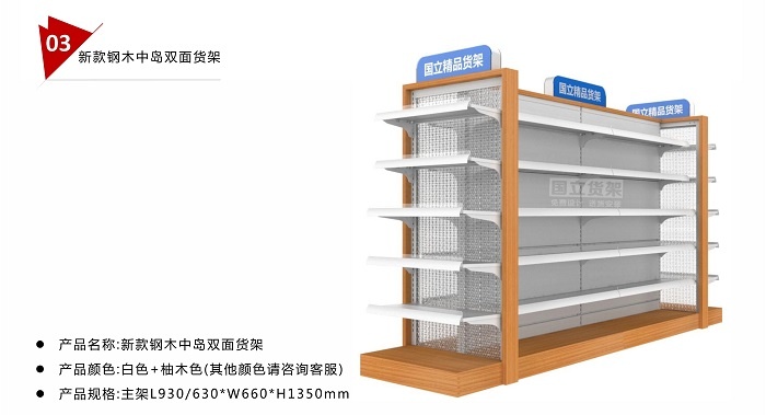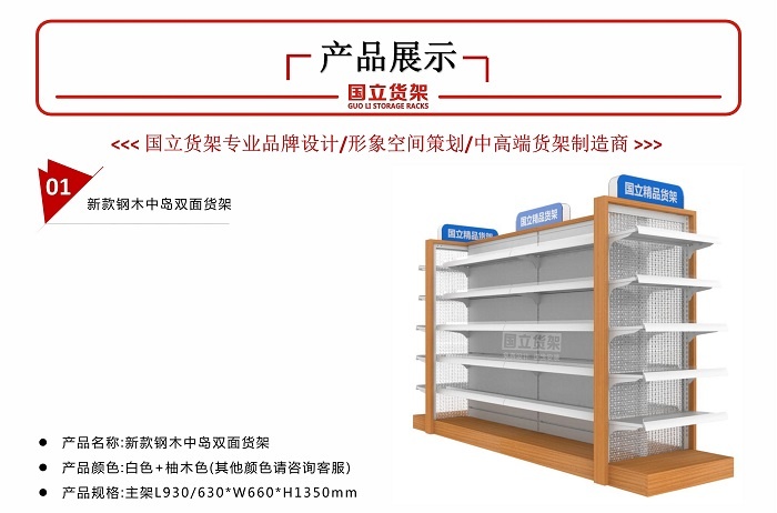 國立中島貨架是一款實用型精品商品貨架,美觀更顯大氣,存儲空間大,能給您要展示的商品錦上添花,是賣場擺放商品的必備神器,國立貨架采用上等原材料,嚴格把控質量關,從源頭開始選擇最好的材質制造最優的產品。