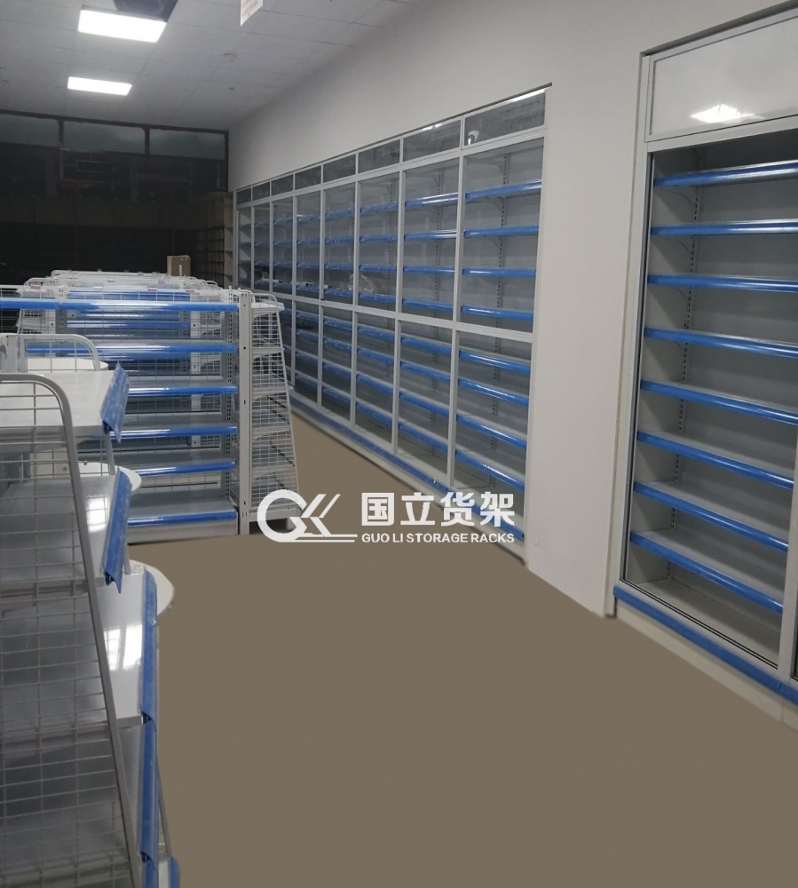 本次案例為藍色主題國立藥店貨架客戶實例展示,藍色給人帶來一種干凈、純潔的感覺,這種顏色也是藥店裝修中比較常見的顏色。合理的區域劃分不僅吸引客戶光顧,而且可以有效提高顧客購買率,同時方便顧客再次購買。