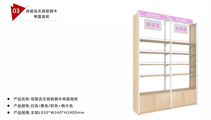 上一篇:服裝店木背板單面高柜介紹 下一篇:鋼木款超市母嬰店中島雙面架