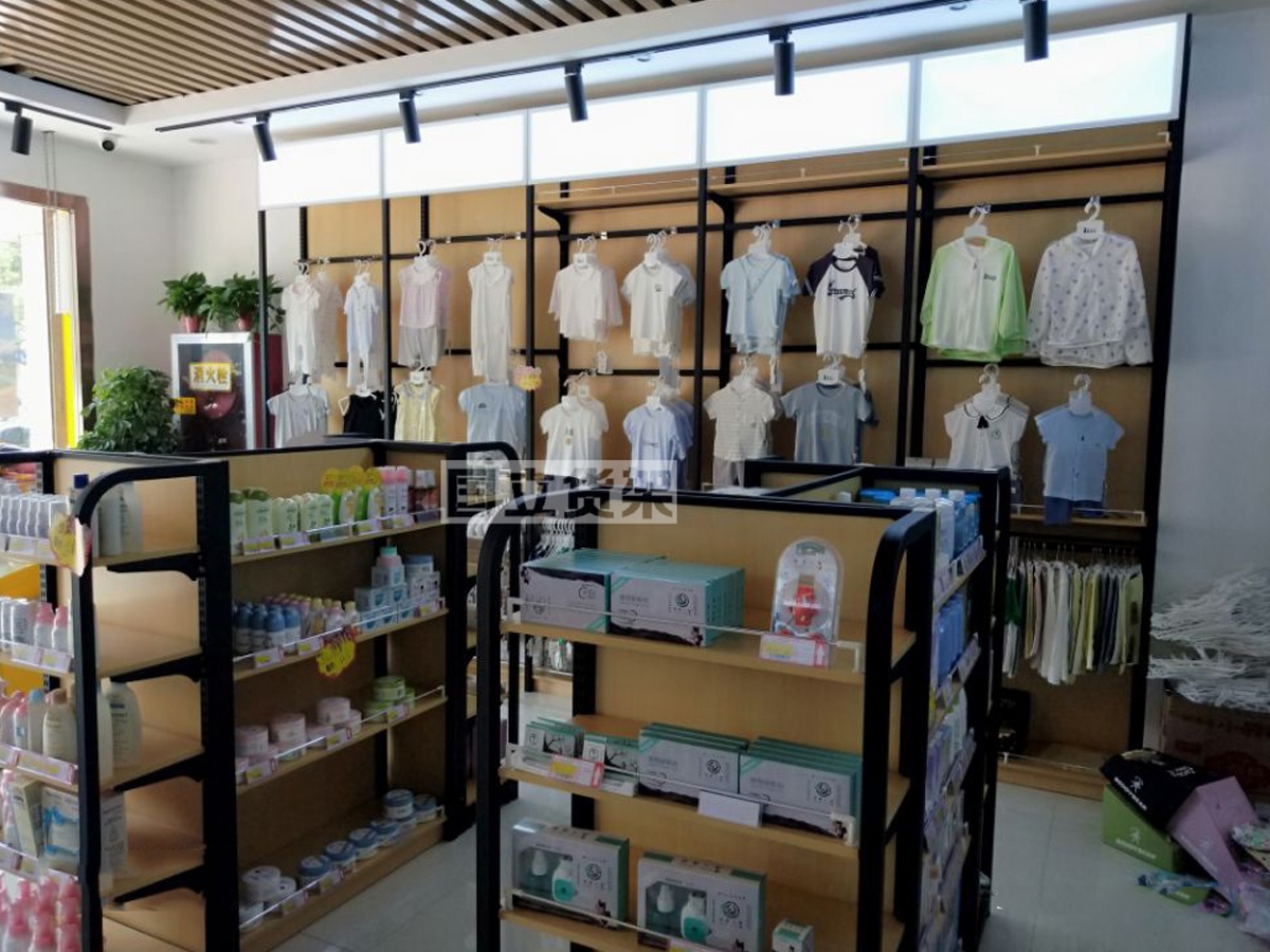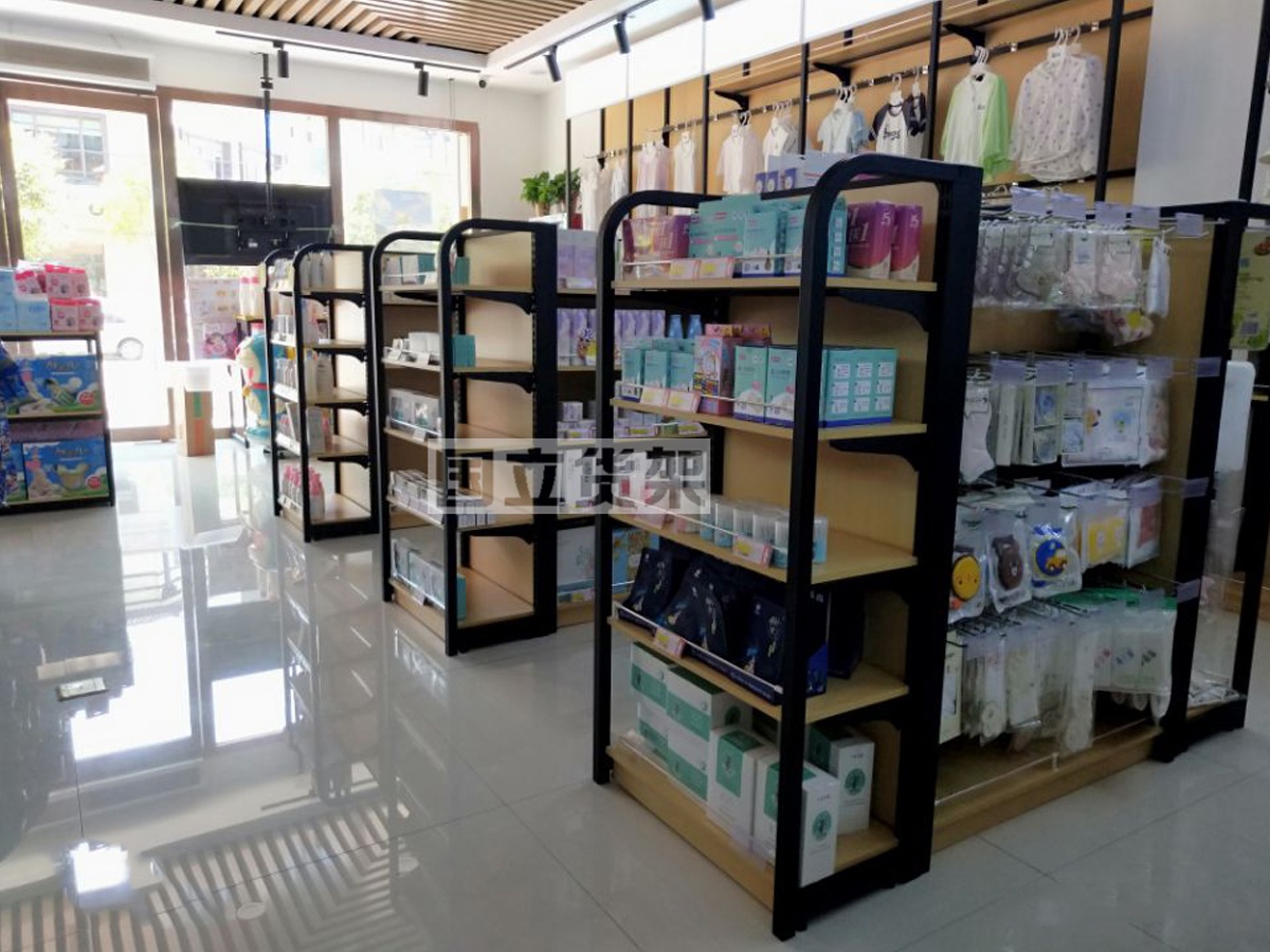 此案例為國立貨架鋼木組合母嬰店貨架案例,鋼木組合貨架表達了一種簡約風格,簡單大方,現代化,環保并且沒有其它的味道,有些高品位的象征,鋼木貨架融使用方面和審美方面于一體,是如今市場比較流行的一種結構。以下是國立某母嬰店客戶案例展示,供您欣賞。